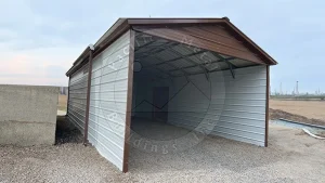 Whether you’re protecting the family car or creating a cozy workspace for hobbies, this 17x35x9 Vertical Roof Carport has it where it counts. This structure, pictured in Earth Brown, features: