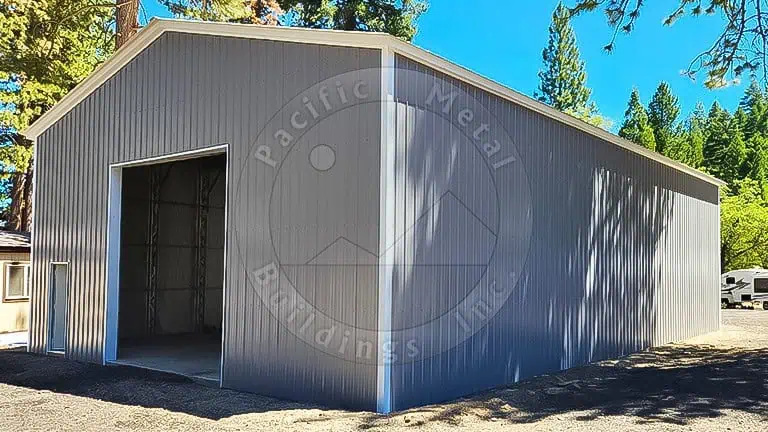 Give your vehicles, equipment, and valuables a safe place out of the rain with this enormous 40x60x16 Vertical Roof Metal Building. This structure is pictured in Pewter Gray with White trim, and includes: